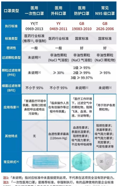 醫(yī)用口罩的種類、參數(shù)對(duì)比與檢測標(biāo)準(zhǔn)