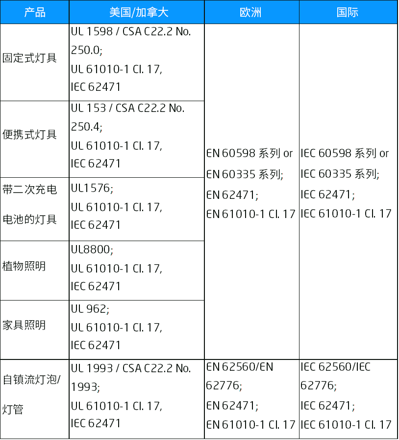 殺菌燈可以作為其它產(chǎn)品的一部分或者作為一個(gè)獨(dú)立的產(chǎn)品出現(xiàn),并廣泛用于公共場(chǎng)合及家里的殺菌消毒。為了協(xié)助各大廠商的殺菌燈產(chǎn)品順利進(jìn)入各國(guó)市場(chǎng),我司專業(yè)為客戶提供定制化的產(chǎn)品風(fēng)險(xiǎn)評(píng)估,整合如下相關(guān)的檢測(cè)認(rèn)證服務(wù)。