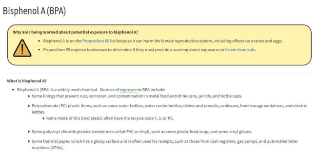 美國加州65提案,全稱為《1986年飲用水安全與毒性物質(zhì)法案》,旨在減少消費品中的致癌和生殖毒性物質(zhì)以保護消費者健康和環(huán)境安全。根據(jù)加州65提案規(guī)定,化學(xué)物質(zhì)列入管制化學(xué)物質(zhì)列表12個月后,如果產(chǎn)品中含有這些化學(xué)物質(zhì)且對消費者造成暴露風(fēng)險,企業(yè)需張貼警告標簽,否則可能面臨訴訟、高額賠償?shù)蕊L(fēng)險。