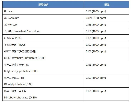 在英國和/或北愛爾蘭向市場投放EEE的制造商必須評估其生產過程,以確保其產品有害物質不超過其限定含量: