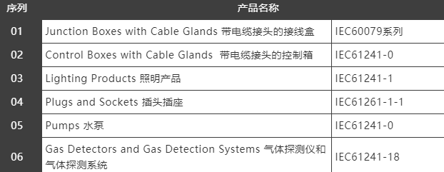 SASO實(shí)施ECEx防爆認(rèn)證:沙特標(biāo)準(zhǔn)局SASO于8月6日發(fā)布正式公告將針對(duì)以下6類產(chǎn)品實(shí)施SASO IECEX(防瀑)認(rèn)證,自2021年11月1日起強(qiáng)制實(shí)施。