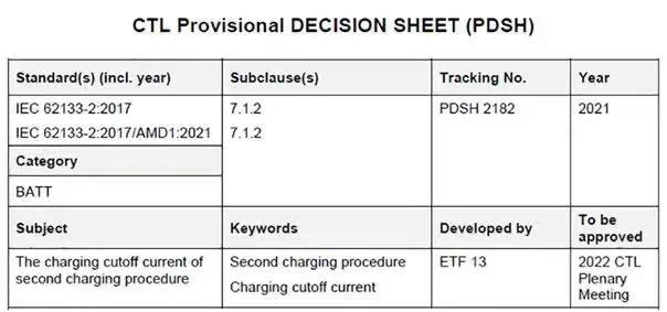 IECEE官網在2021年9月14日公布了關于電池的最新CTL臨時決議,改動內容如下